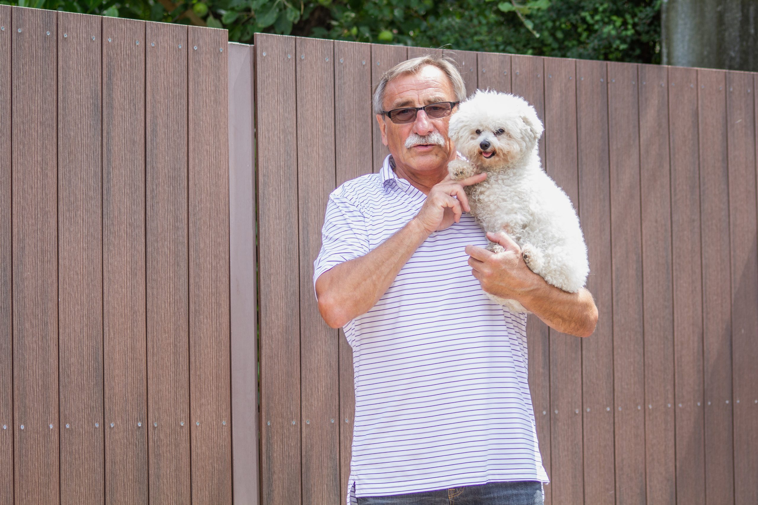 „Původně tady byla podlaha, jakási krákorka a pak jsme se rozhodli s mojí ženou, že ji vyměníme. A proč? Protože podlaha WoodPlastic je skvělá v tom, že ji nemusíte každý rok natírat. A hlavně proč jsme ji pořídili – budeme mít letos čtyři vnoučata a představte si, že by ta vnoučata tady běhala po kameni, to by nešlo. Takže jsme se rozhodli, že bude WoodPlastic. WoodPlastic je skvělej, krásnej, hladkej, jediná nevýhoda je, že mi na to kadí kosi, tady mám fleky od kosů, ale zase  – není problém – vezmete vapku, vyvapkujete a je to čistý, takže je to absolutně nejlepší podlaha, jakou znám k bazénu. Firmě WOODPLASTIC musím říct, že jsou skvělí, bezvadný a pohodoví.“