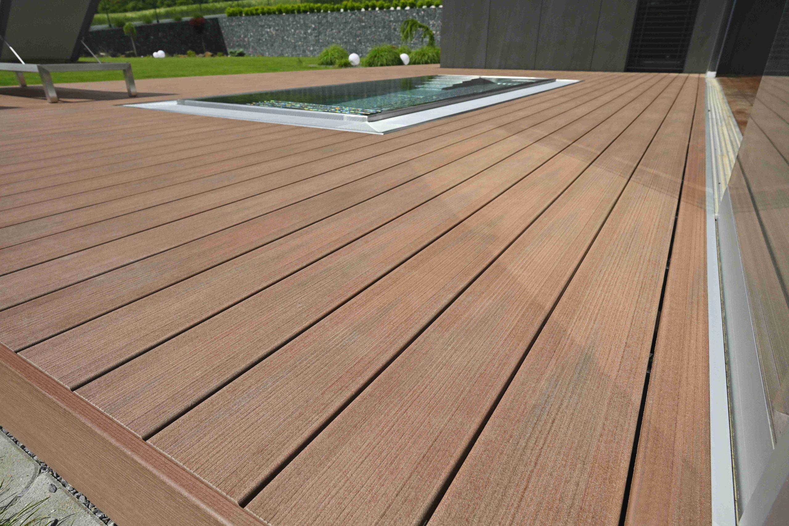 Terasa Rustic Teak dokonale podtrhuje vybraný vkus majitelů nového obydlí i prostředí okrasné zahrady
