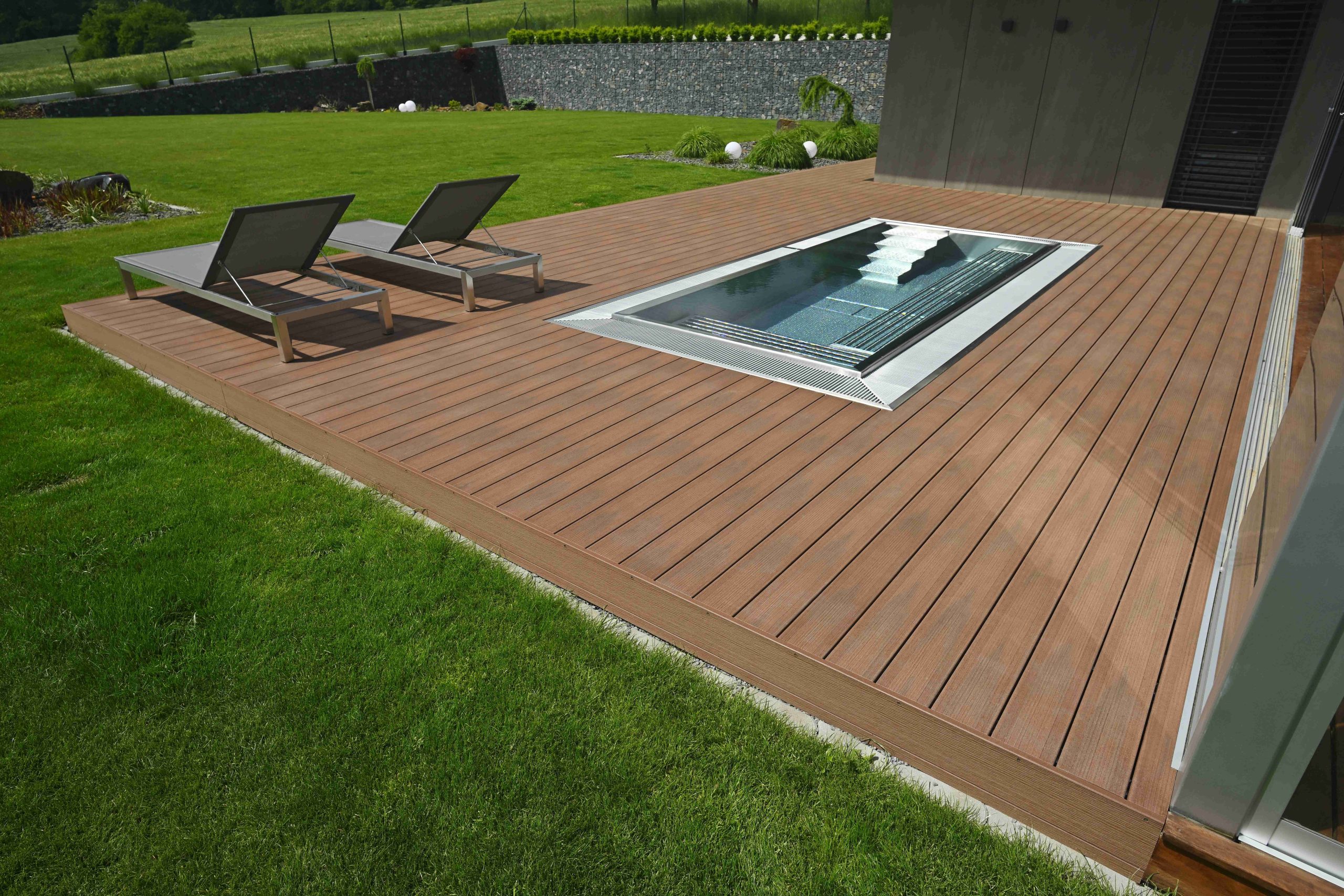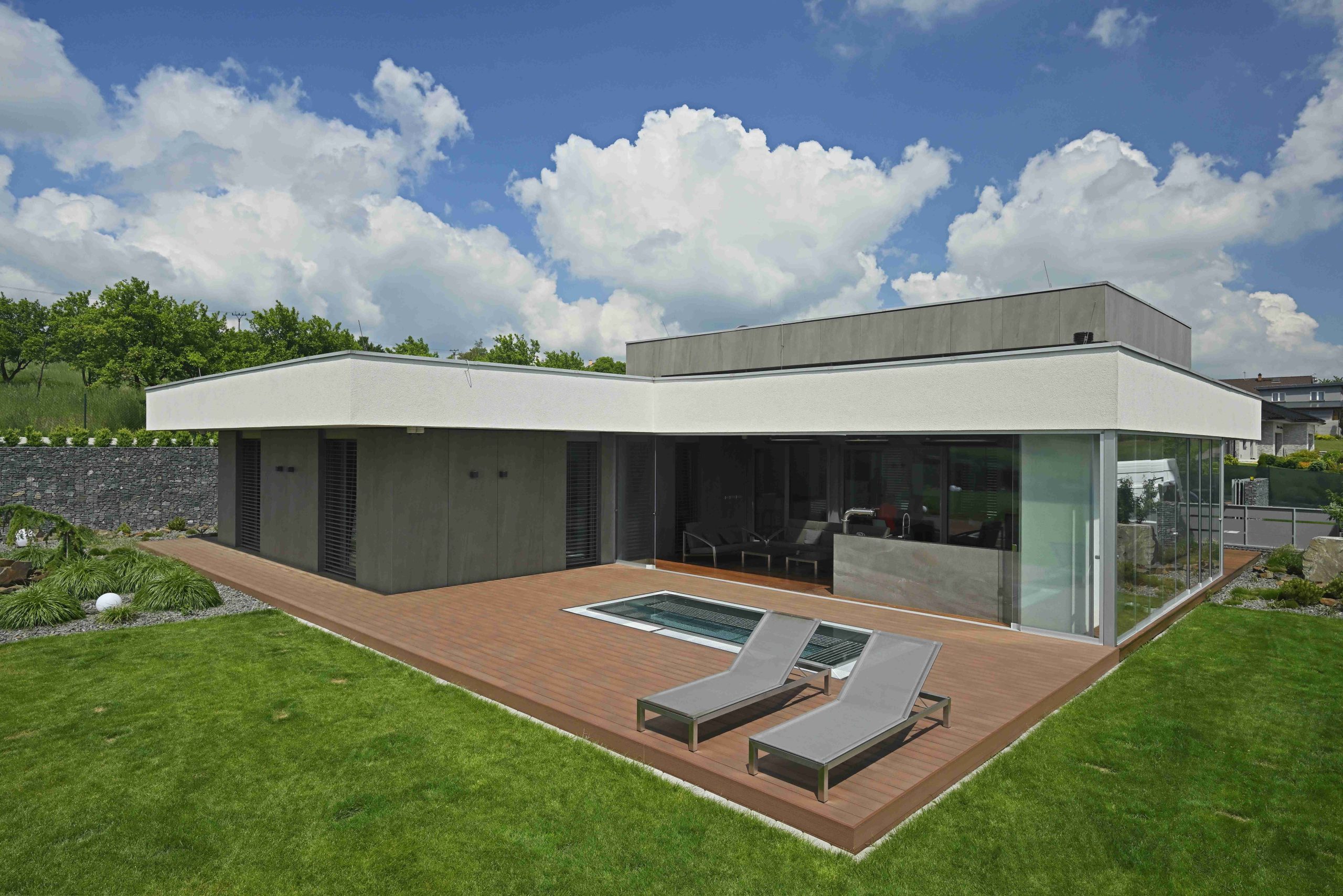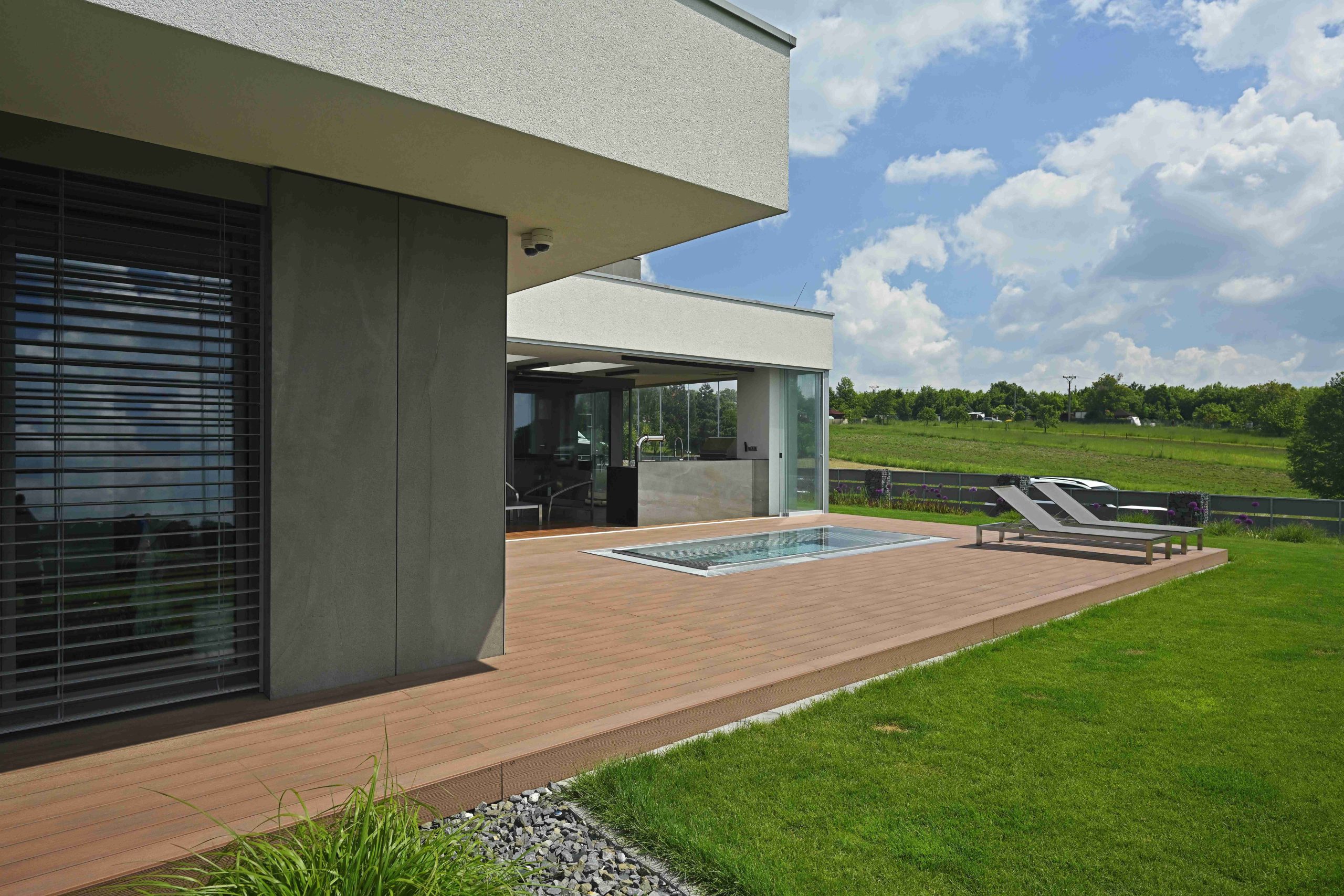 Terasa Forest Palisander skvěle propojuje dům s bazénem a nádhernými výhledy do okolní krajiny.