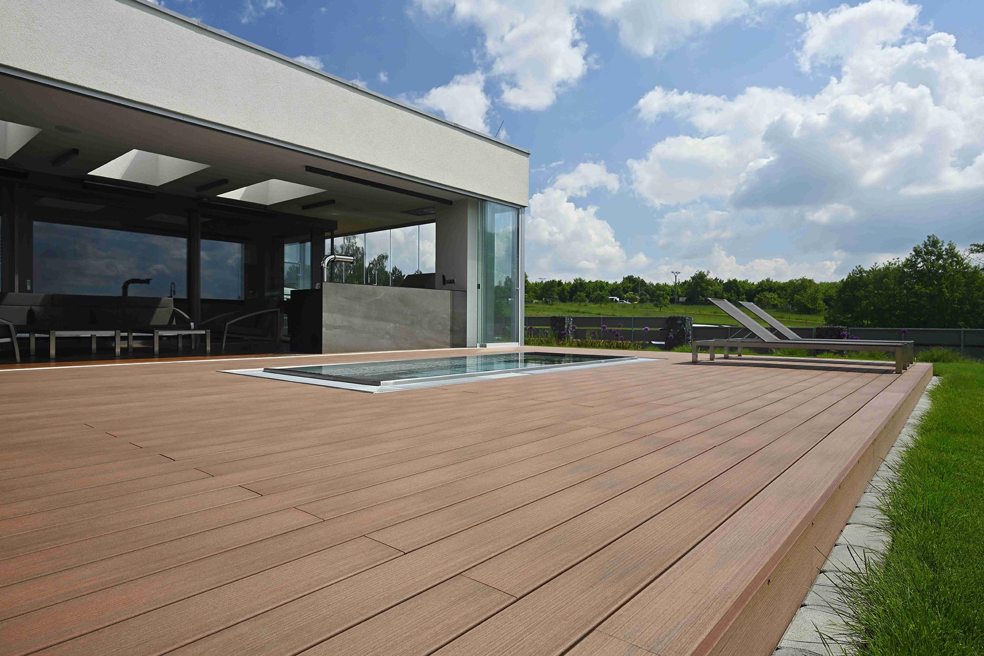 Povrchová úprava prken teras FOREST je navržena tak, aby připomínala vzhled luxusního exotického dřeva. Tato výrazná textura nejen že esteticky obohatí terasu, ale také zvýší její bezpečnost tím, že zabraňuje klouzání. Terasy FOREST jsou ideální volbou pro ty, kteří hledají spojení přírodní krásy s unikátním designem. Nabízíme možnost výběru ze tří různých šířek prken – 137 CLASSIC, 140 INFINIT a 195 MAX – které vám umožní přizpůsobit vzhled terasy vašim představám.