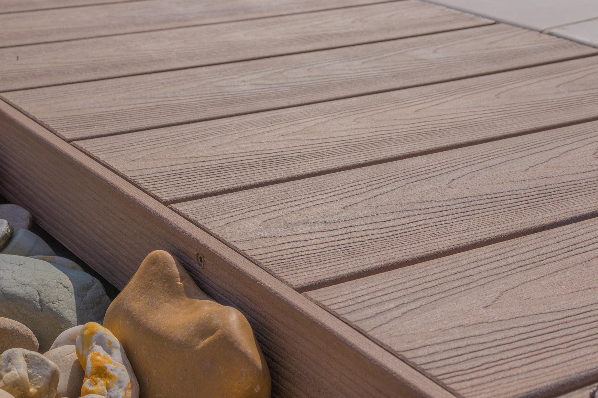 Terasy Natur nabízejí přírodní vzhled prken věrně imitující dřevěné letokruhy. Kromě výjimečné odolnosti a minimální údržby se můžete těšit i z bezpečí, které vám poskytne protiskluzový povrch bez jediné třísky.